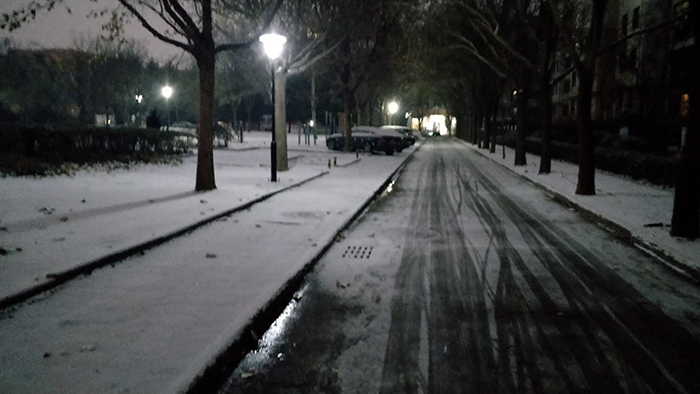 走出单元,小区的地上很干净,不见雪,又有点失落,没想象的大,汽车的车顶覆盖着一层雪,心里说:唉,下的太少了。走在街上,天空沙啦的小雪粒打在冲锋衣上,提醒我,雪正在下着。只要下着就行,我心里想着。不知有多少人等着、盼着这场雪,多下点吧。