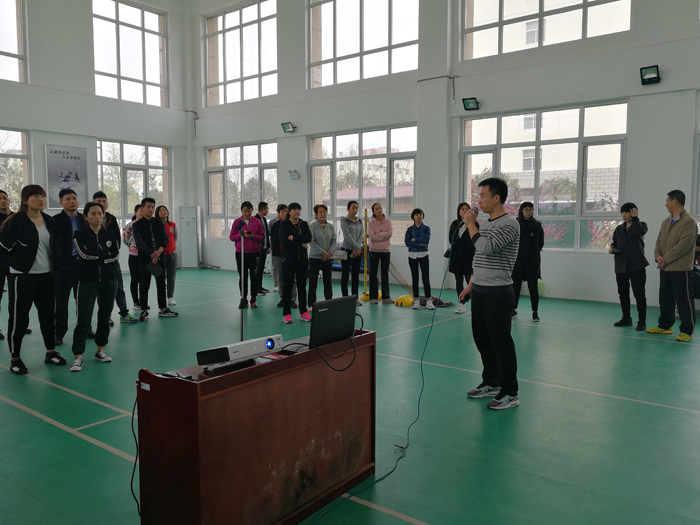 田文静同志是淇县公安局民警,2011年参加公安工作,2007年开始从事羽毛球运动,多次在我省、我市羽毛球比赛中荣获冠军,有着丰富的赛事经验。讲座分为两个部分,第一部田文静同志先对羽毛球比赛规则、场地标准、世界重要赛事、计分方法等基础知识进行了普及。第二部分是实操教学。为了提高讲座的实效性,田文静同志在球场上为大学讲解了羽毛球运动前的热身运动,比赛中的站位、步法、发球、接球等操作要领,并现场进行了示范。对观众提出的问题,田文静同志一一做了细致的解答。
