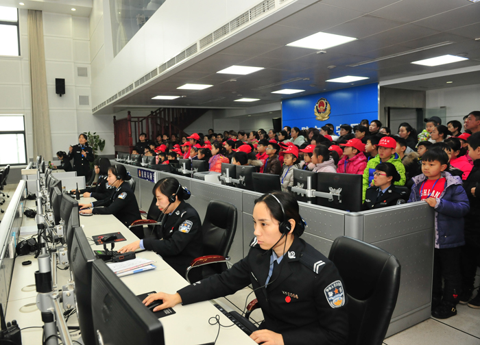之后王淑华主任在指挥中心结合“110,守护新时代美好生活”主题详细介绍了110不断完善接处警机制、规范接处警行为等方面的成效,不断拓展“民生110”、“网络110”服务范围,开通网络、微信、微博报警平台和走失人员查找、危重病人救助绿色通道,以及设立反诈骗中心、及时为群众挽回经济损失等公安便民利民举措。现场播放了预防电信诈骗宣传片,以鲜活的案例对在场的小记者和家长进行了一次反电诈宣传。