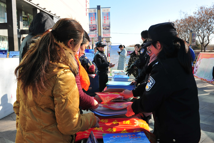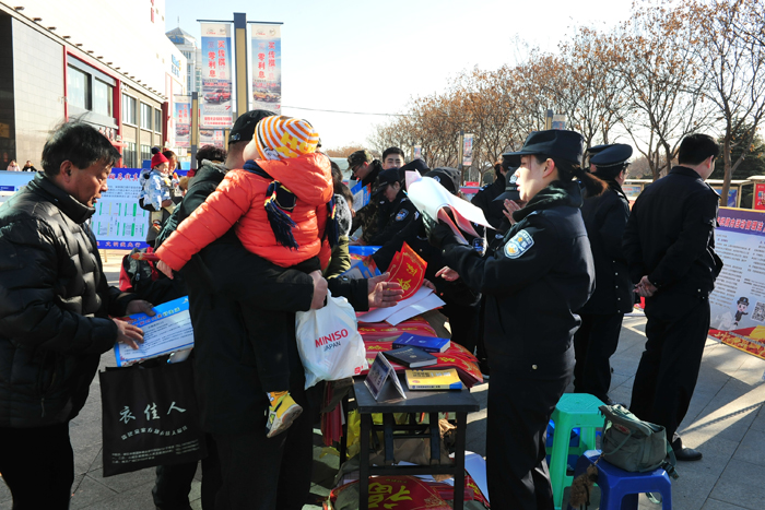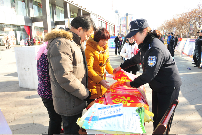 全市各级公安机关在辖区人流密集地段和商业场所设立宣传咨询点,通过民警现场解说、展板展示、发放防范知识宣传页、平安对联,特警警用装备展示、消防抢险救生装备展示、警犬搜救表演等多种形式,营造良好的宣传氛围。