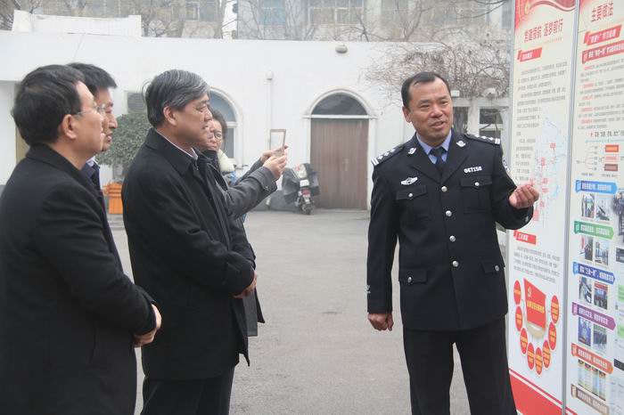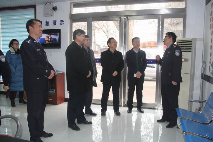 在彦光警务室,申涛一行听取了社区民警张彦光对警务室基本情况、辖区治安状况和警务室工作开展情况以及工作成效等的汇报,并实地察看了警务室基础建设、工作台帐等。在分局机关,实地查看了分局党建工作展板,观看了分局“四个仪式”宣传片,对山城区公安分局深入推进“两学一做”学习教育常态化制度化,强化党的基层组织建设,创新思想政治工作模式以及发挥先进的示范带动作用给予了充分肯定。同时,围绕充分发挥基层党组织和党员的主观能动性、创造性开展工作,搞好结合等提出了指导性建议。